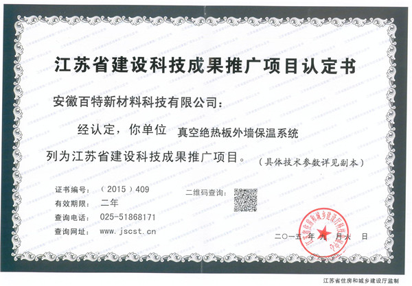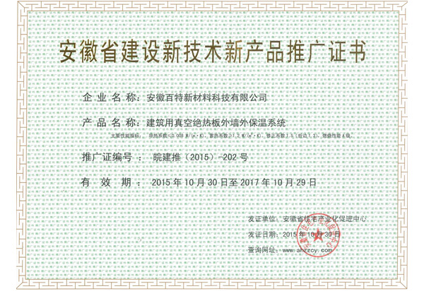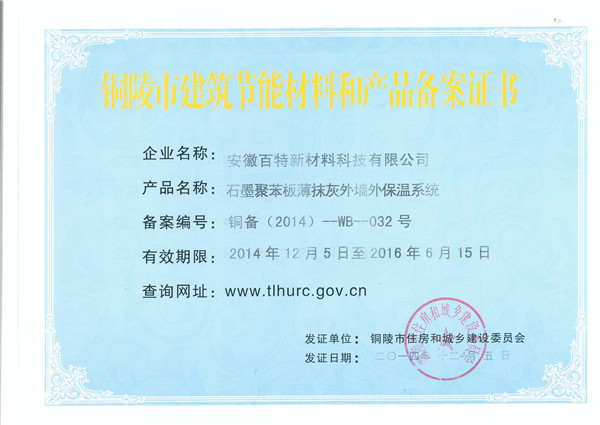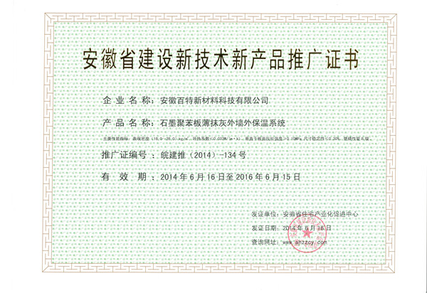 安徽省石墨聚苯板外墻保溫系統(tǒng)推廣證